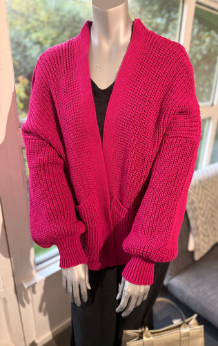 Pocket Detail Knitted Cardigan-Hot Pink